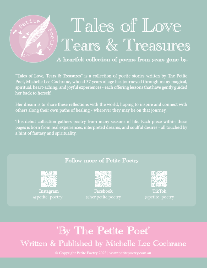 “Tales of Love, Tears & Treasures” is the debut poetry collection by Australian author and international best-seller in category, The Petite Poet – Michelle Lee Cochrane.